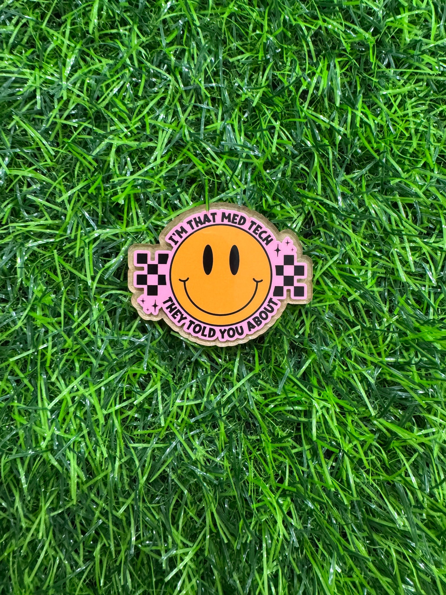 I’m That Med Tech Acrylic Blank & Decal Set. This listing is for 1 acrylic blank & 1 decal sticker with mask. Decal is printed vinyl sticker with gloss laminate.