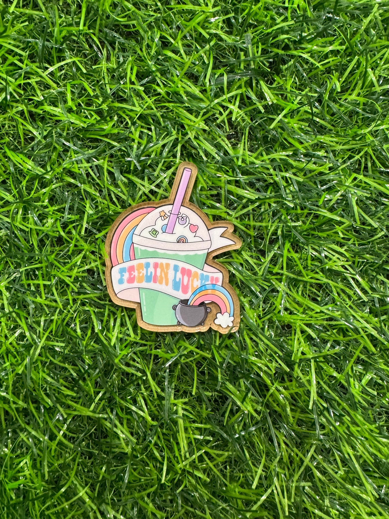 Lucky Iced Coffee Blank & Decal Set . This listing is for 1 acrylic blank & 1 decal sticker with mask. Decal is printed vinyl sticker with gloss laminate.
