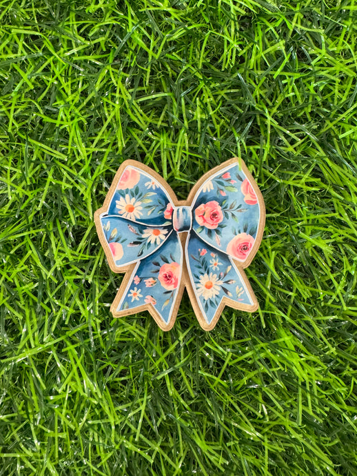 Blue Floral Stethoscope Bow Retractable Badge Reel