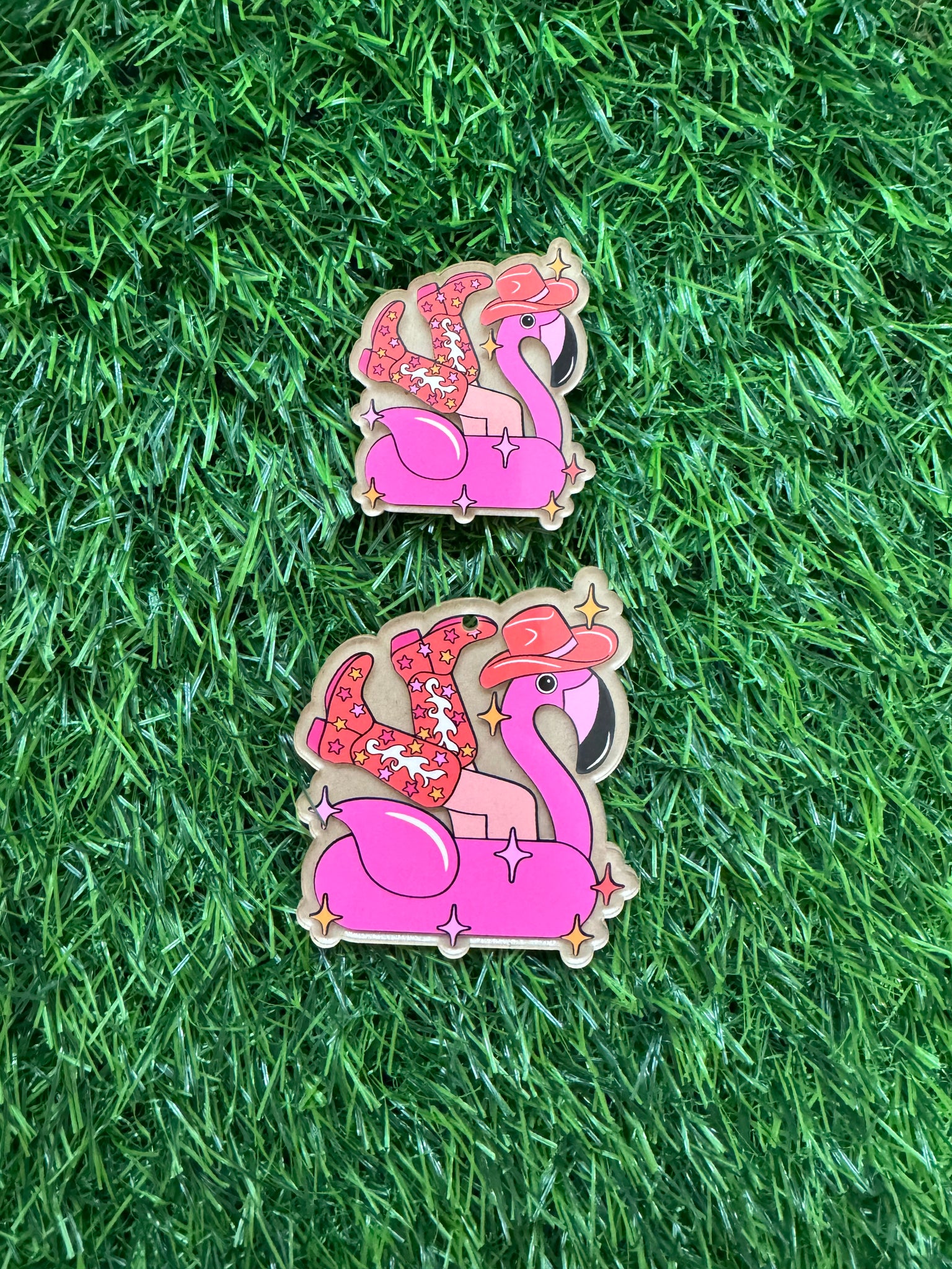 Cowgirl Flamingo Acrylic Blank & Decal Set Collection . This listing is for 1 Blank & 1 decal sticker with mask. Decal is printed vinyl with gloss laminate.