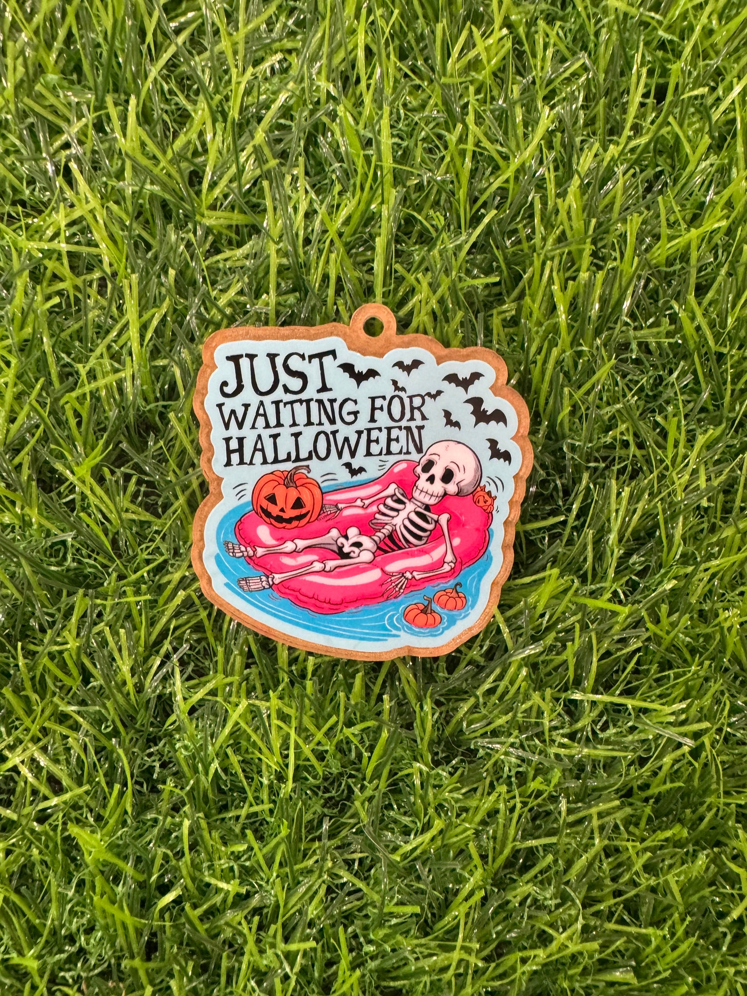 Just Waiting For Halloween Acrylic Blank & Decal Set. This listing is for 1 acrylic blank & 1 decal sticker with mask. Decal is printed vinyl sticker with gloss laminate.